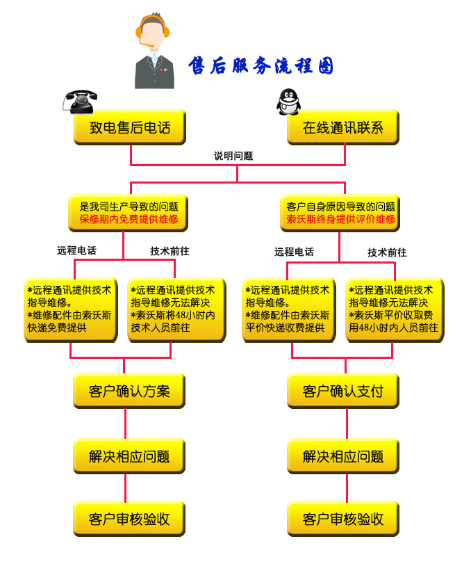 如果需要維修,索沃斯技術(shù)人員將通過(guò)客戶所在地的呼叫中心安排服務(wù)。索沃斯不排除上門(mén)服務(wù)可能由索沃斯服務(wù)合作伙伴提供。